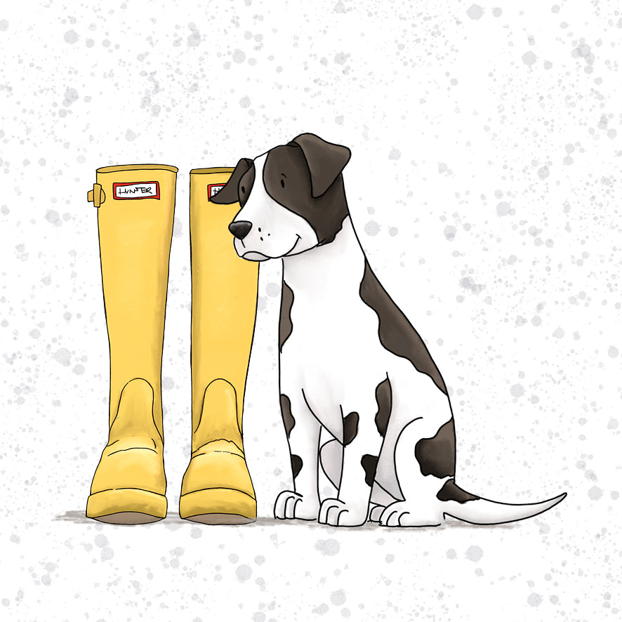 Here is a card from my “Walkies” range. This one features a Terrier dog sitting next to a pair of yellow wellies. As there are no words on the front, it can be used for a number of occasions.